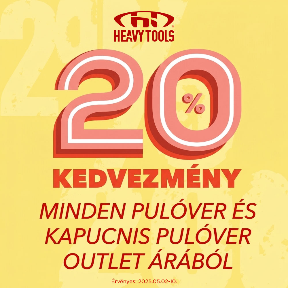 -20% kedvezmény minden pulóver és kapucnis pulóver outlet árából.