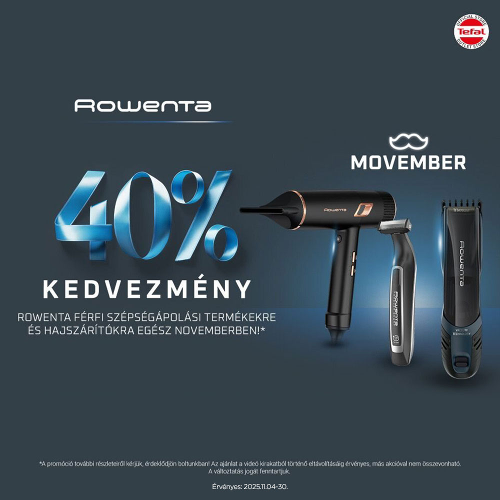 40% kedvezmény az outlet árból minden Rowenta férfi szépségápolási termékre és hajszárítóra egész novemberben!
